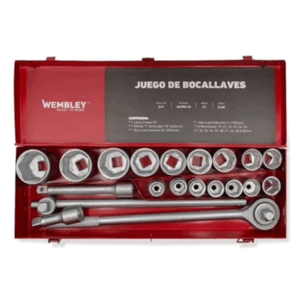 16 Bocallaves Milimétricas HEXAGONALES Encastre 3/4”: 19, 21, 22, 23, 24, 26, 27, 29, 30, 32, 35, 36, 38, 41, 46 & 50mm